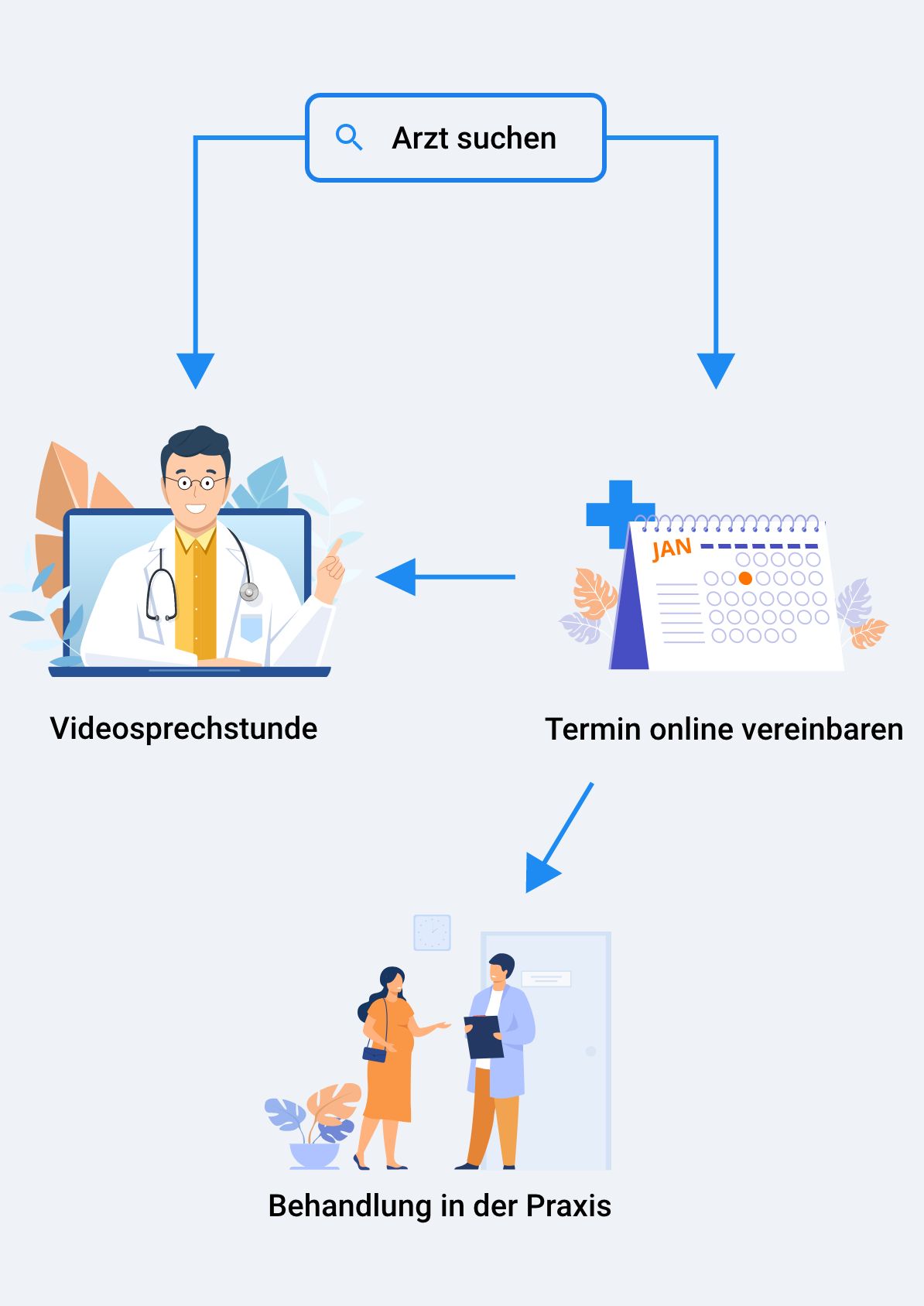 Wählen Sie einen passenden Online-Arzt aus hunderten Praxen in ganz Deutschland, erhalten Sie schnelle Hilfe per Online-Konsultation oder buchen Sie unkompliziert mit nur wenigen Klicks einen Termin für ein persönliches Gespräch in Ihrer Nähe.